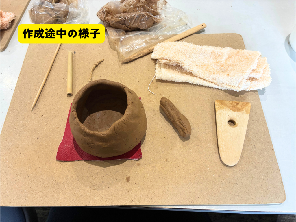 土器づくり(小)は所要時間が長め(約90分〜)なので、集中力があまり続かないお子さんや、未就学児には少し大変かもしれません。