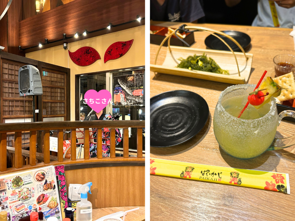 そして夜は、民謡の生演奏と沖縄料理が楽しめる「ぱいかじ デイゴ別邸」で、沖縄旅行最後の夕食をいただきました。