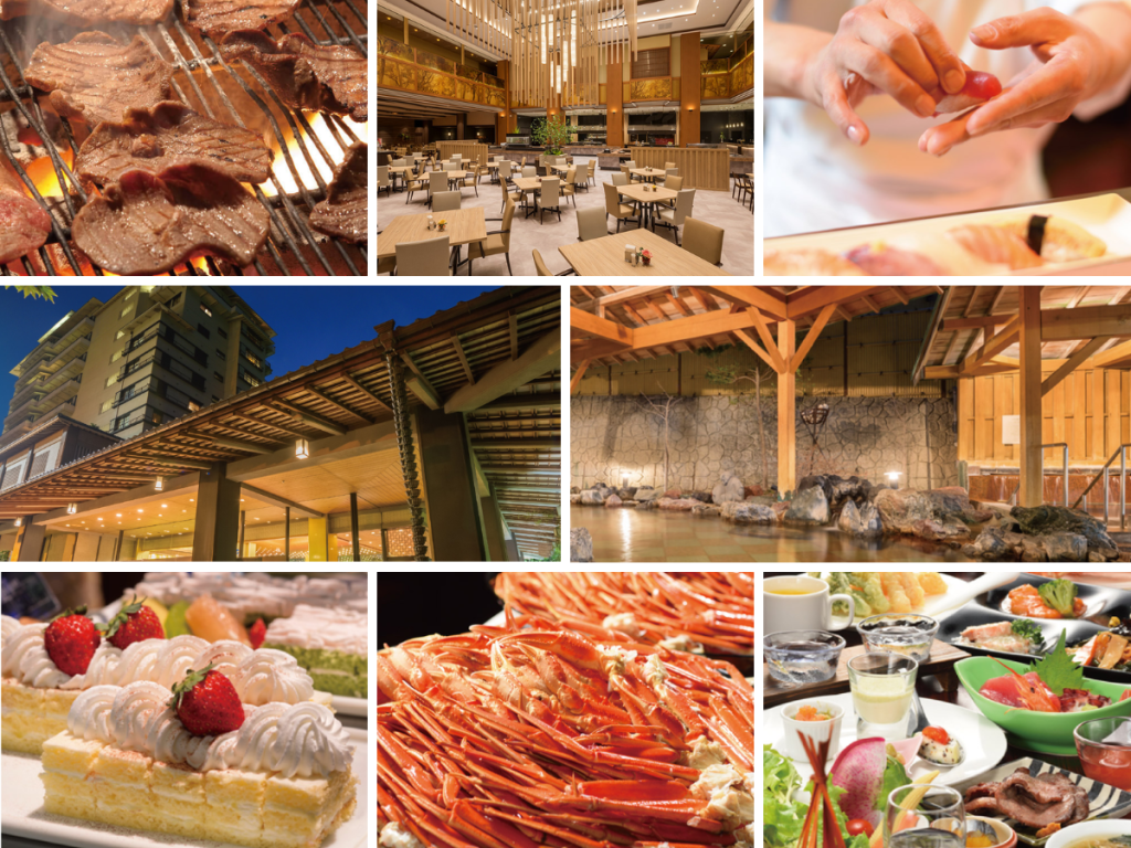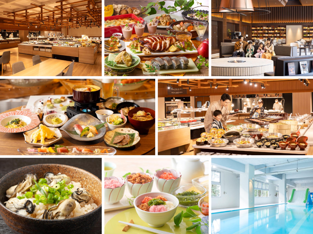 さらに、子どもが大好きなライブキッチン付きバイキングでは、目の前でシェフが調理してくれる出来立てメニューがずらり!牛タンや蟹の食べ放題も楽しめます。