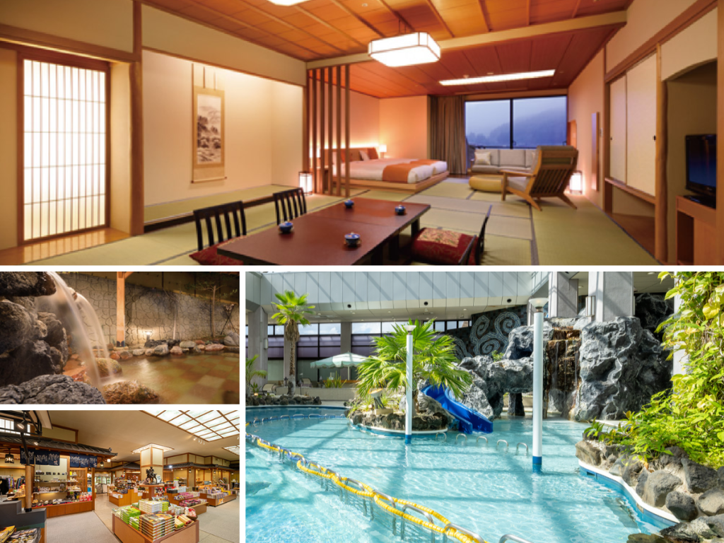 館内には開放感あふれる六趣の露天風呂や広々とした大浴場があり、親子でゆったり温泉三昧。