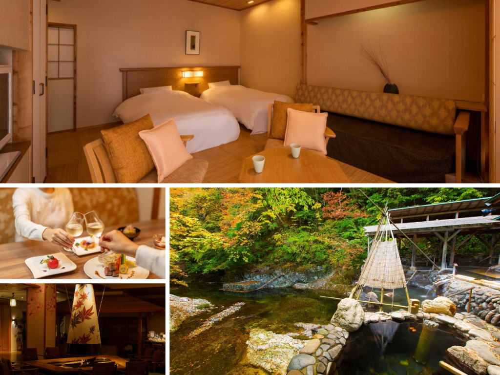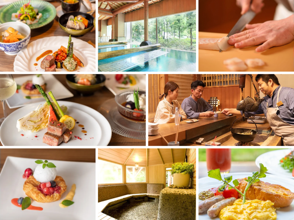 - 露天風呂付き客室やサウナ付き特別室など客室種類が豊富